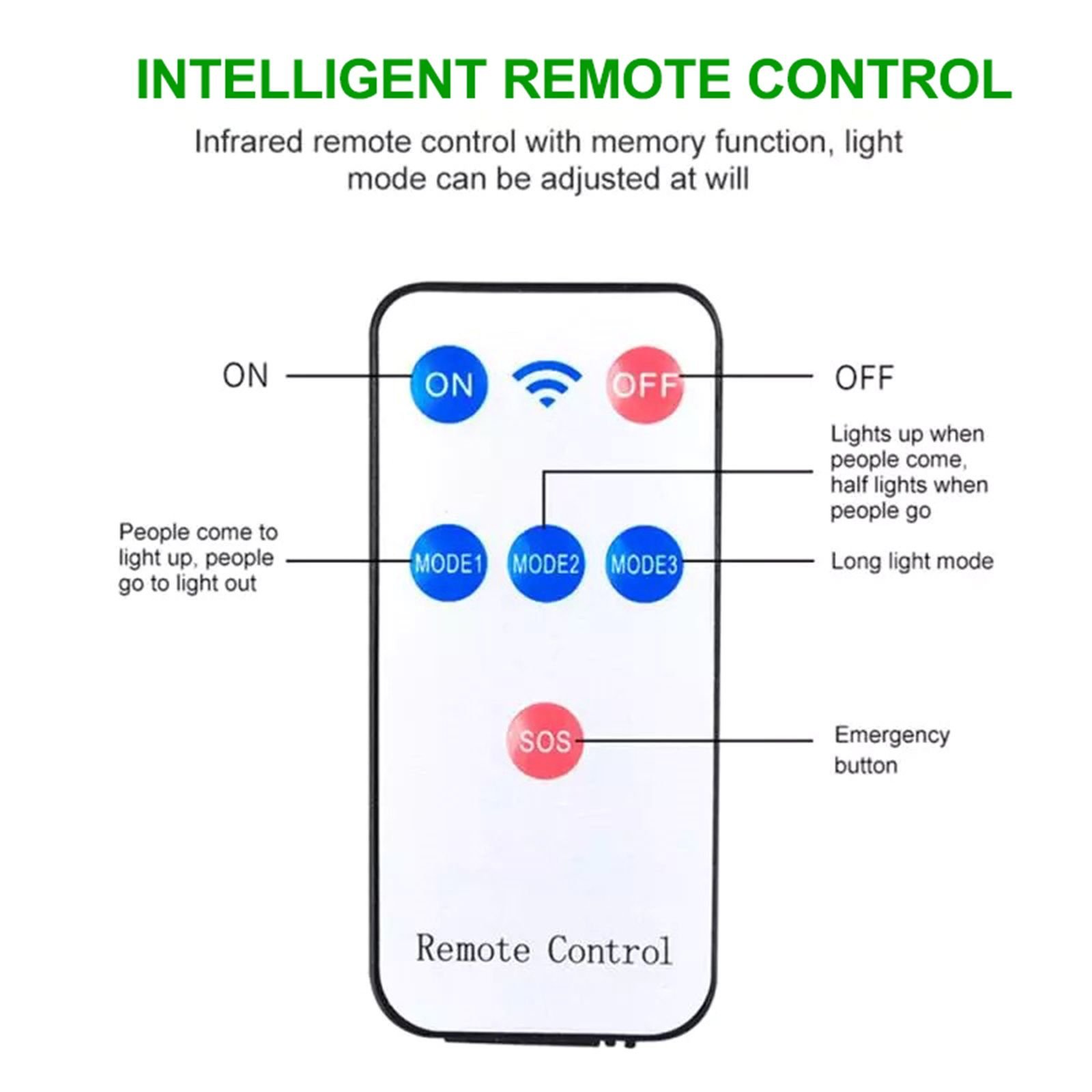 - Mode 1: Human body sensing mode light will be off. The lights are high and bright as people pass by. Turn off 20 seconds after the person leaves