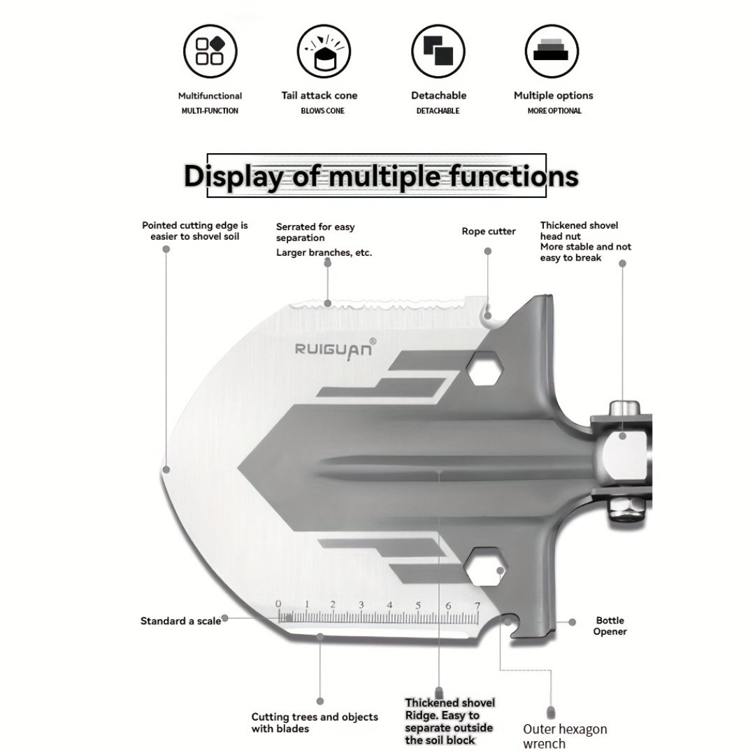 Ultimate Outdoor Multi-Function Tool Shovel: Foldable, Axe, Shovel, Bottle Opener, Saw, Knife, Whistle, Fire Starter, Fish Spear, Window Breaker