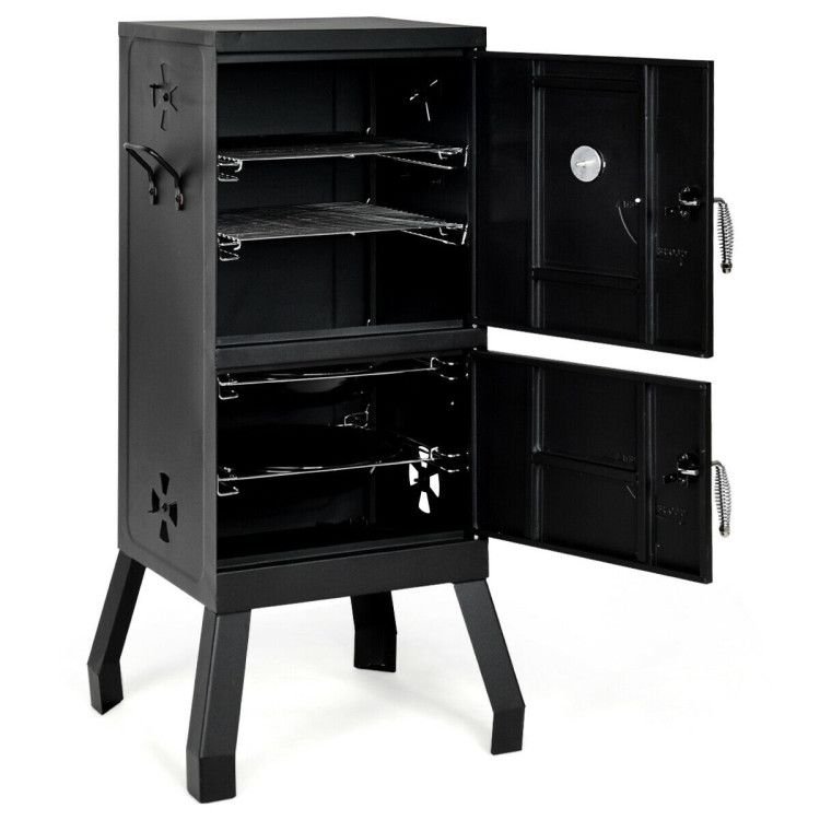 ● Convenient Double Door Design: Unlike other smokers only have one door, this smoker owns double door design. When you want to check the food or add the wood, you just need to open one door, which reduces the contact between charcoal and air, thus greatly improving the safety of barbecue and ensuring keep the food flavor.